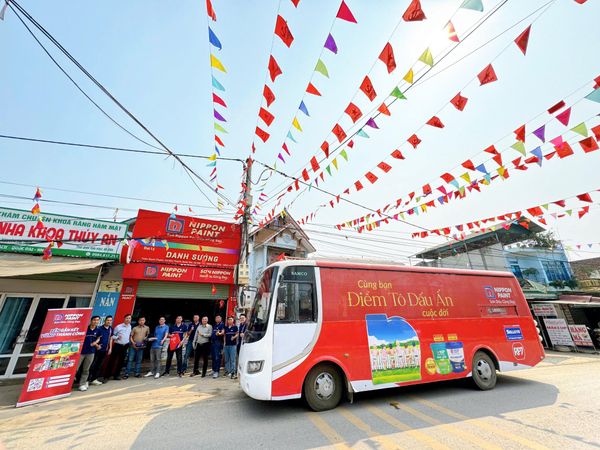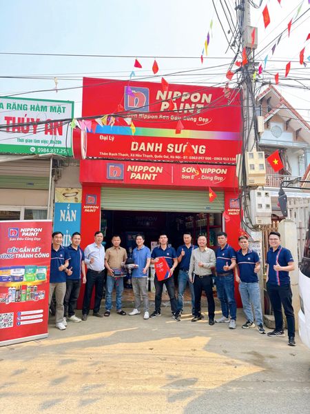 Không khí Lễ hội rộn ràng như còn nguyên ở nơi đây khi cờ phướn vẫn rực rỡ sắc mầu khắp cả đầu làng, đúng nơi Đại lý Sơn Nippon Danh Sướng đặt cửa hàng phục vụ bà con Hoà Thạch các sản phẩm sơn nhà cao cấp của Nippon, cảnh sắc hợp quá là hợp, tình quá là tình ạ ![]()